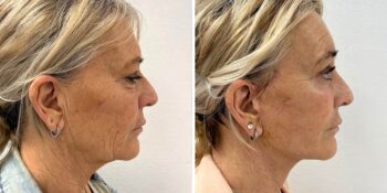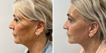 Resultaat bij een 56-jarige patiënt 3 maanden na een deepplane facelift gecombineerd met een endoscopische voorhoofdslift en een onderooglidcorrectie om zo een jonger en meer uitgerust uiterlijk te creëren.